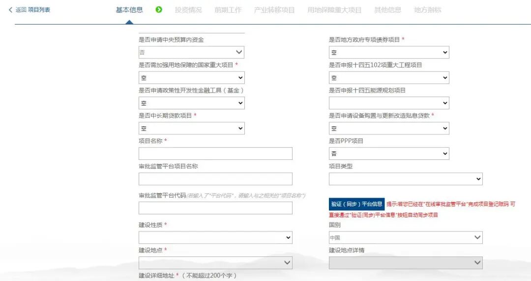 6、项目储备:项目信息填报必填项有哪些?