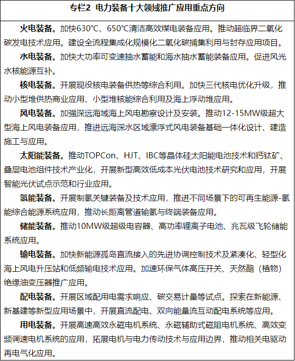 (二)电力装备技术创新提升行动
