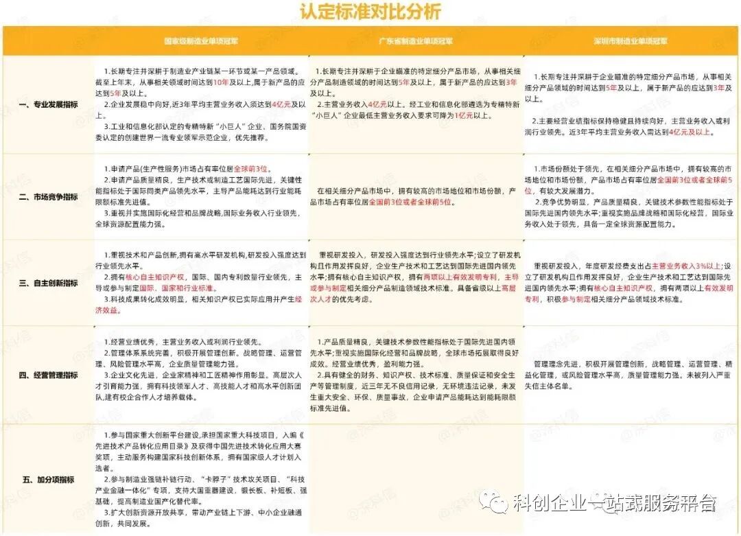 包含两方面内涵:一是“单项”,即企业必须专注于目标市场,长期在相关领域精耕细作;二是“冠军”,即要求企业在细分领域中拥有冠军级的市场地位和技术实力。