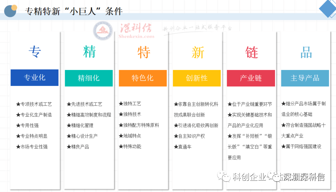 “专精特新”小巨人企业认定工作需要准备的材料种类多且复杂,需消耗大量的时间和精力且对项目申报人员的经验要求很高,建议企业申报前咨询深圳深科信,20年项目申报经验,有专业顾问上门指导提供定制化申报方案。专业机构具体的申报细节!