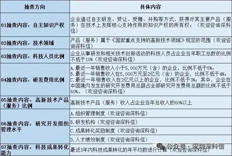 高新技术产品(服务)收入占比问题:如果企业有产品为贸易收入,剔除后导致高新收入占比不够,或者产品技术含量低,不符合重点支持领域,剔除后导致高新收入占比不够,都可能导致未通过。欢迎咨询深科信。