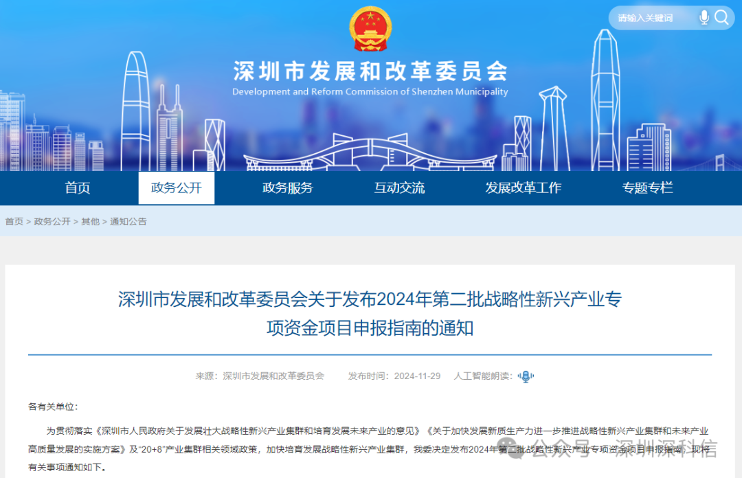 2024年深圳市第二批战略性新兴产业发展专项资金项目申报已开始