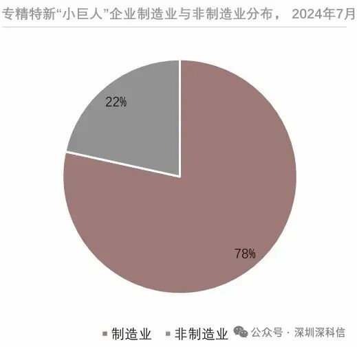 在专精特新“小巨人”企业分布前十的行业中,有9个行业属于制造业领域,其中计算机、通信和电子设备制造业、专用和通用设备制造业等行业是“小巨人企业密集度最高的行业,一方面是由于这符合培育专精特新的最初目标,即攻克中国关键领域“卡脖子”问题。过去,中国产业发展中存在“卡脖子”的技术问题,尤其在芯片、发动机等领域存在短板,部分关键零部件和装备依赖国外,一旦受到制裁,中国本土行业关键环节的发展将会面临限制。另一方面则是由于制造业在中国的重要地位决定了专精特新“小巨人”企业中大多数企业是制造业。2023年,中国制造业增加值规模为40万亿元,占GDP比重达31.7%。自2010年以来,中国制造业增加值已连续12年位居全球第一。中国制造业企业数量众多,基数较大因此更有可能培育出更多的专精特新企业。