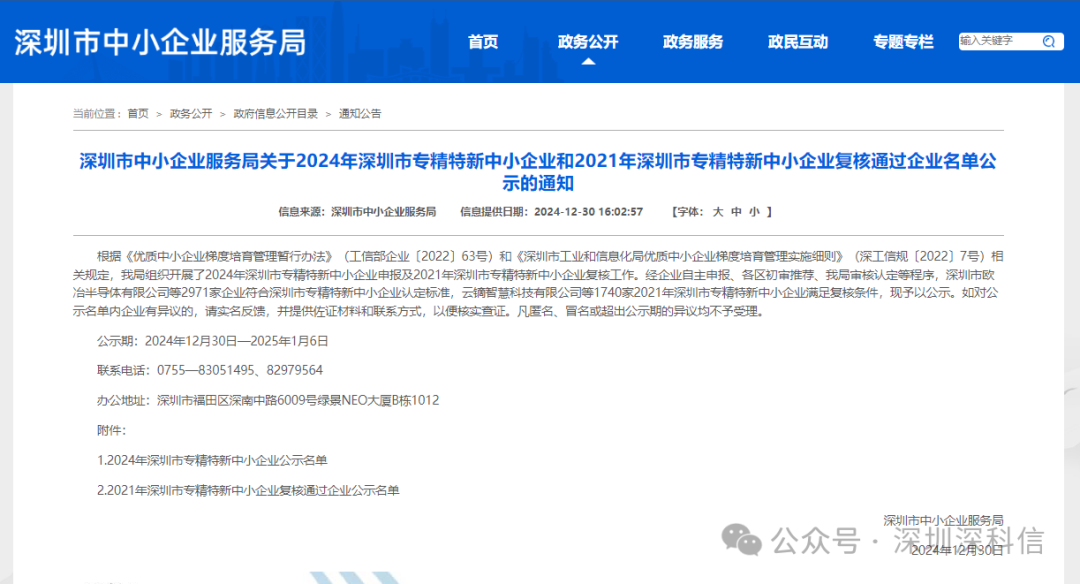 刚刚,2024年深圳市专精特新中小企业和2021年深圳市专精特新中小企业复核通过企业名单公示!