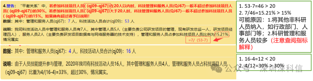 管理和服务人占比过高的问题:再次检查是否管理人员和服务人员过多,若情况属实,应具体说明差异的原因