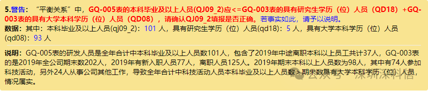 举例:我司GQ-005表的本科及以上人员为xxx人,包括2023年中途离职员工xxx人;GQ-003表中具有大学本科学历人员为xxx人,具有研究生学历xxx人,为期末人数,由于员工离职变动,导致全年合计中科技活动人员本科毕业及以上人员数>期末数具有大学本科学历(位)人员,情况属实