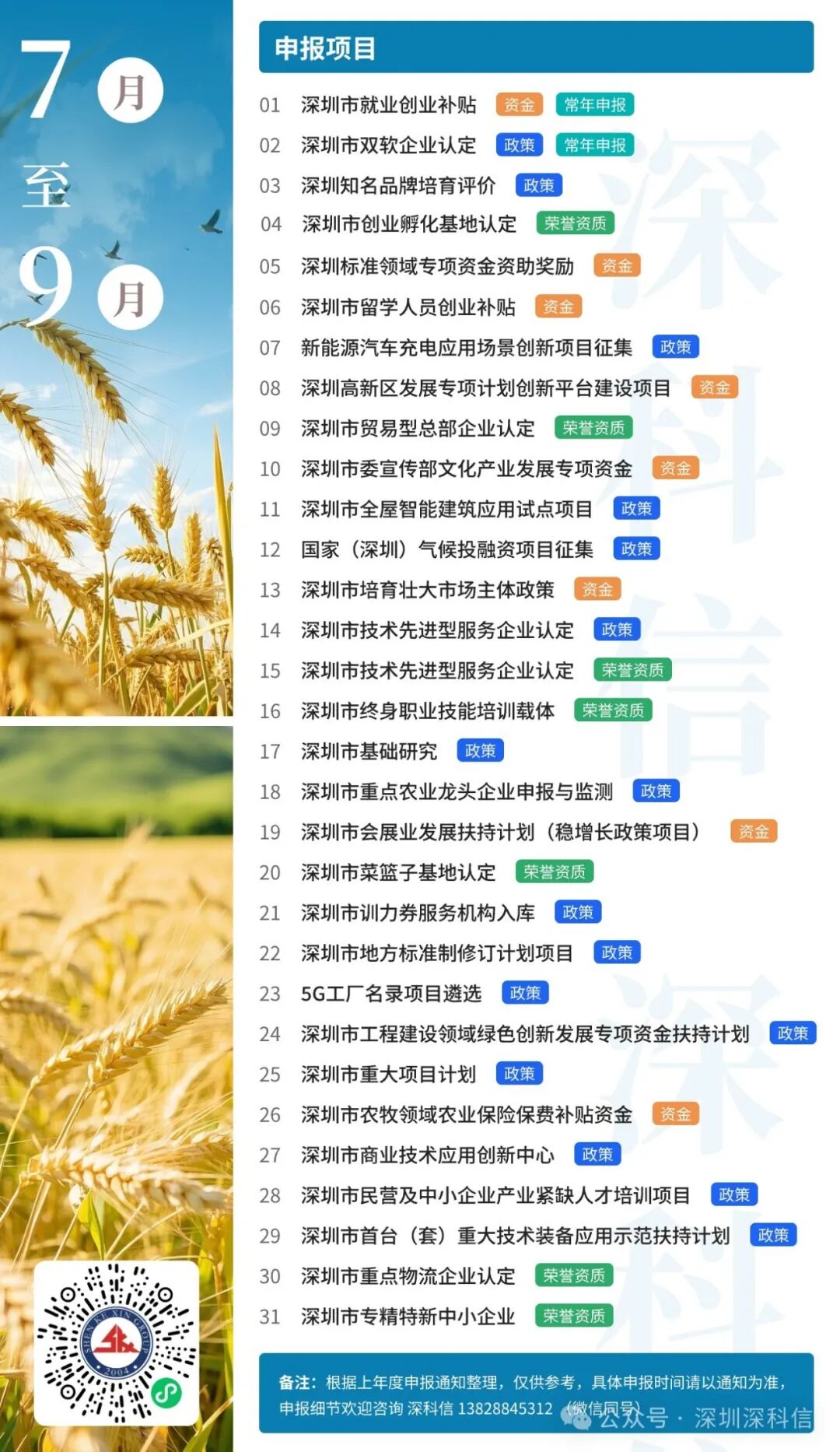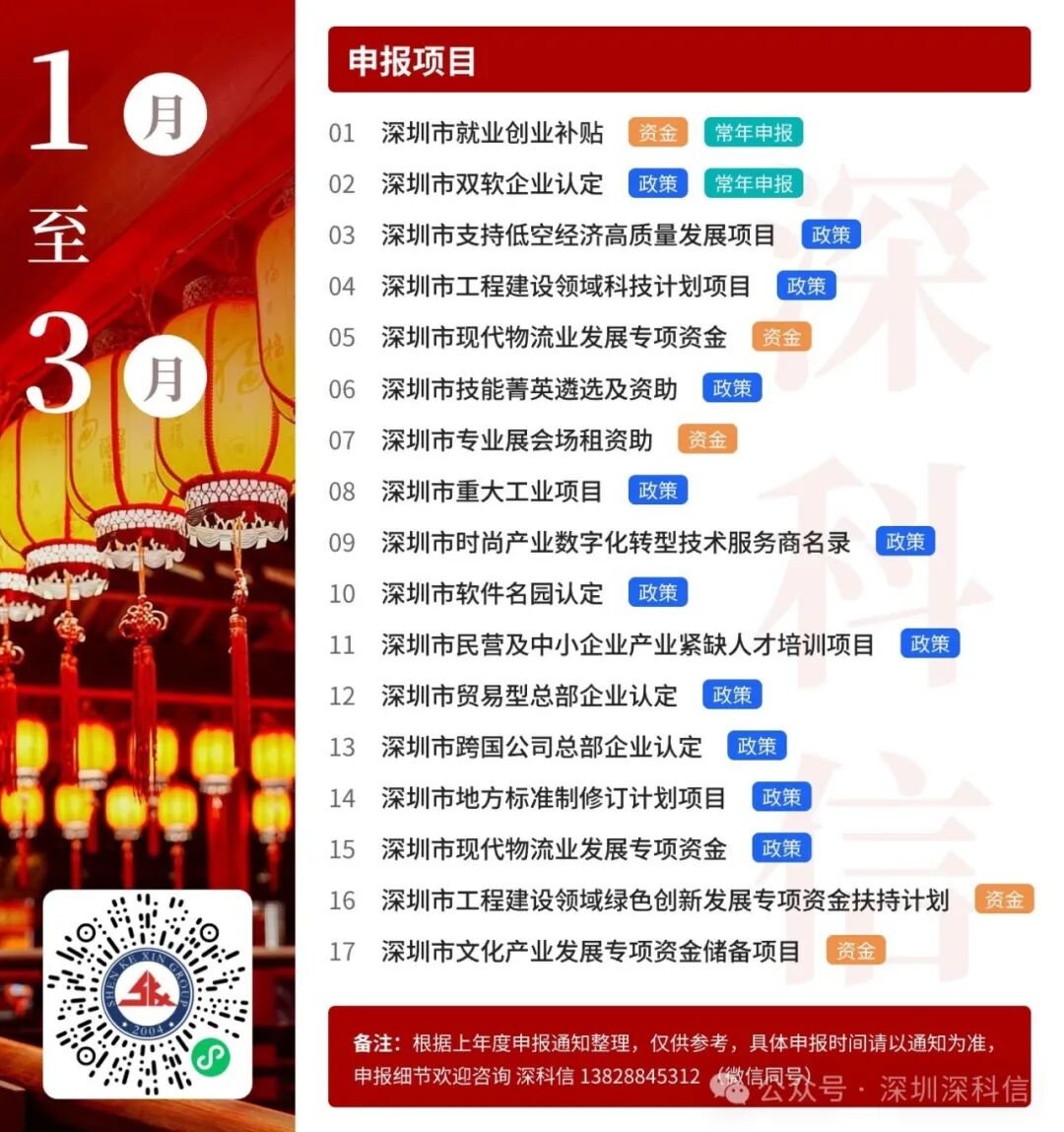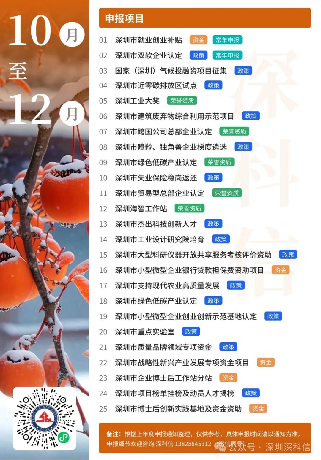 深科信精心准备了2025年度深圳市政策申报月历