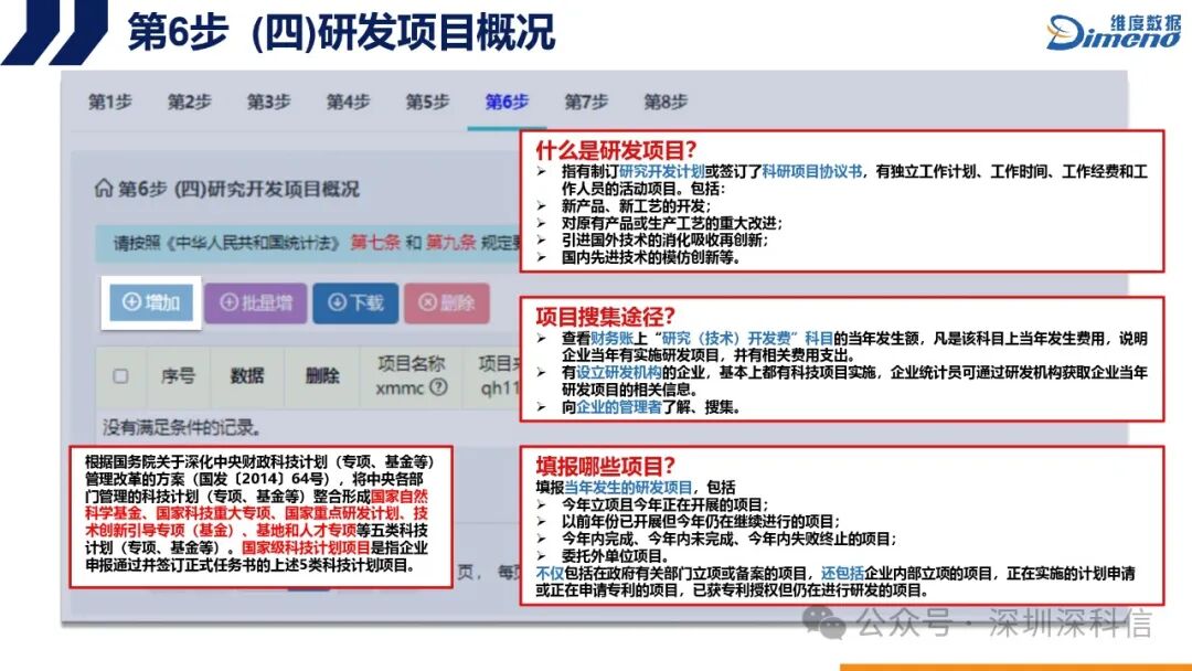 火炬报表要求:研发项目经费合计 营业收入” 3-5%,“研究开发经费”是通过第6步“研发项目表”进行核算的!研发项目表中的“项目经费合计”与第7步“研发活动费用合计”不要相差太大!政府委托项目自主研发项目其他企业单位委托项目以及委托其他企业单位项目都需填报,请查看是否漏报!
