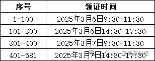 领证时间:2025年3月10日至2025年3月14日 上午 9:30-11:30,下午 14:30-17:30。