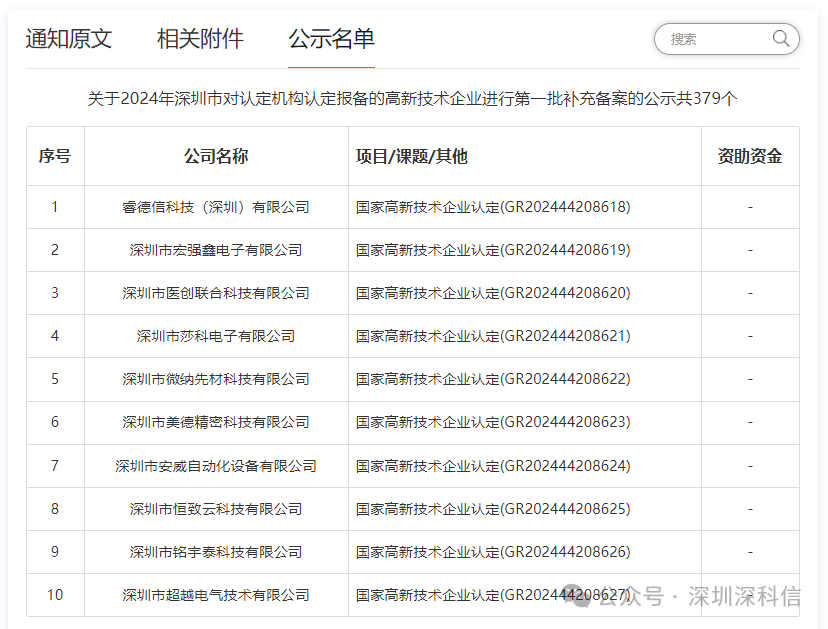 刚刚,深科信从高新技术企业认定管理网得知,共计379家企业通过深圳市高新技术企业第一批补充备案公告。注意:有高企证书号的备案名单,才是真正通过高企认定。没在名录中的企业也不要灰心,补充备案第二批尚未公布。欢迎关注深科信订阅最新高新资讯~
