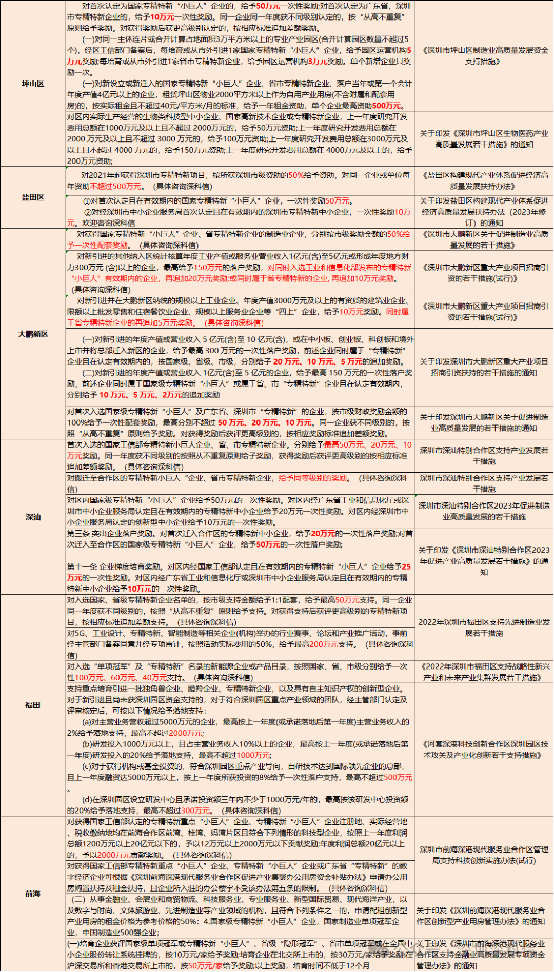最后,深科信帮大家整理了专精特新小巨人补贴汇总,快收藏!