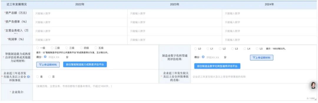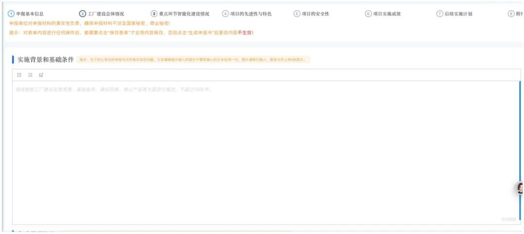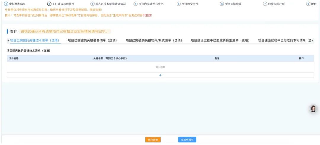 用户需要注意,卓越级智能工厂申报中,除附件部分为选填外,其余内容均为必填,请用户根据企业自身相关情况,对本系统中的相关必填项进行填写。