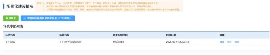 对于相关场景的情况,用户可点击新增场景右侧的“智能制造典型场景参考指引(2025 年版)”的按钮,跳转至相关文件进行查看。