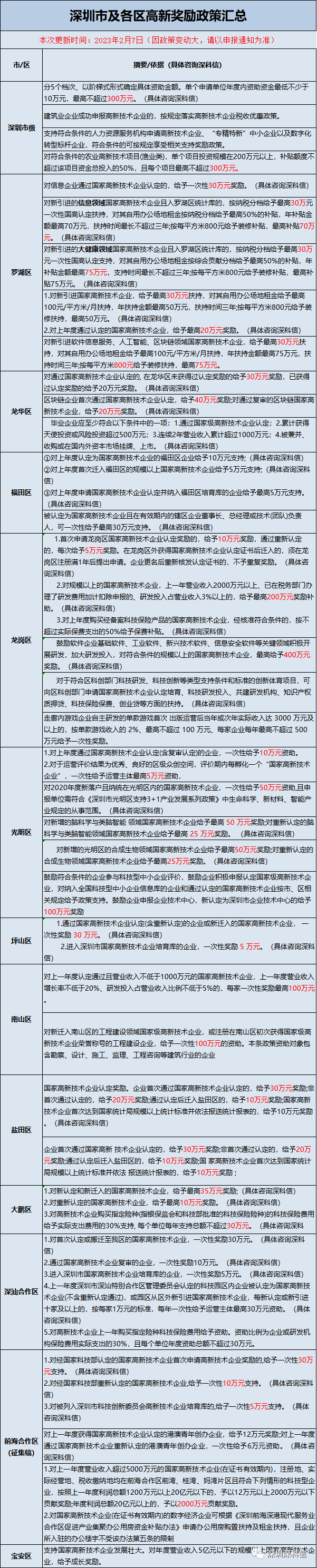 深圳新认定高新技术企业,认定奖励+研发补贴最高300万(附各区补贴表)